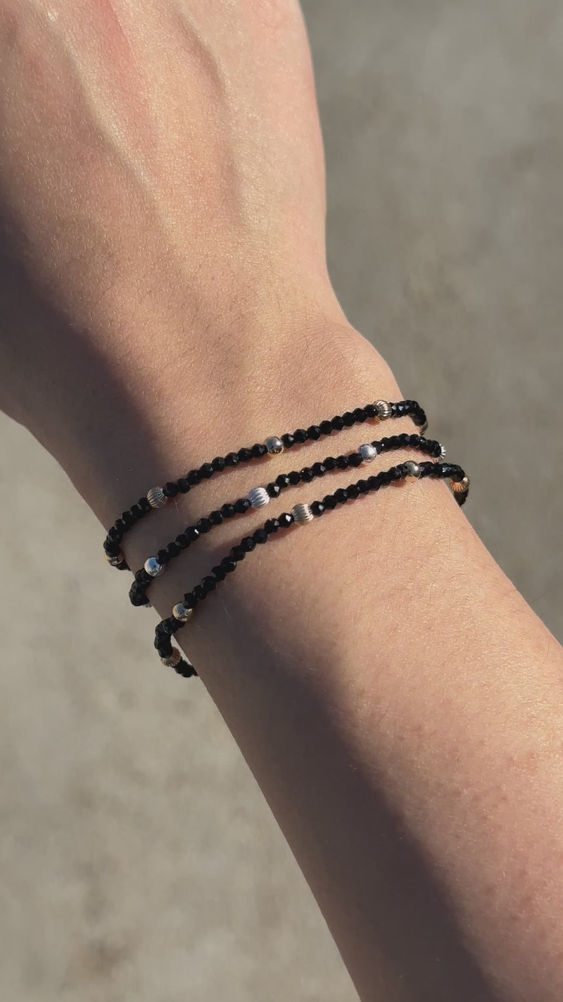 3MM smooth & corrugated beads with 2MM Black Czech Glass Seed Beads